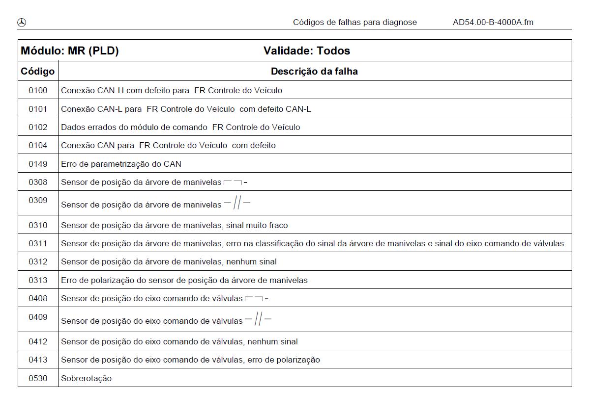 Códigos de falhas do módulo PLD de todos os veiculos da Mercedes-Benz