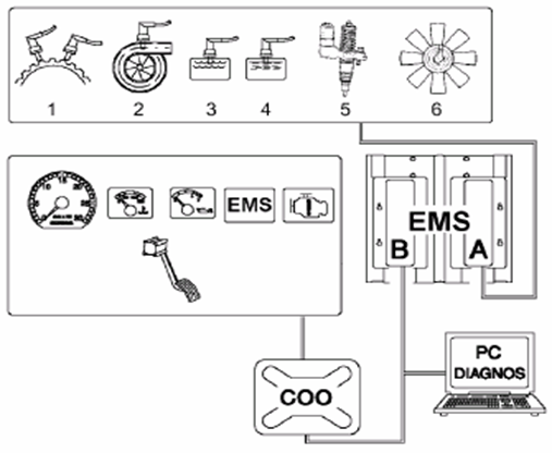 Gerado se a unidade de comando do EMS descobrir uma falha ou alguma coisa que ela interpreta como anormal. No EMS S6, um código de piscadas é o equivalente a vários códigos de falha diferentes e são indicados por lâmpadas no painel.